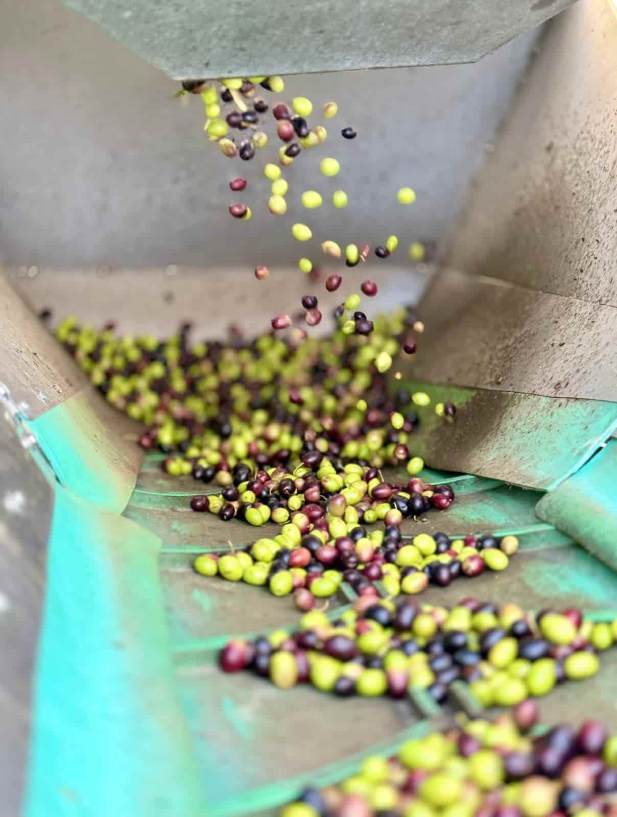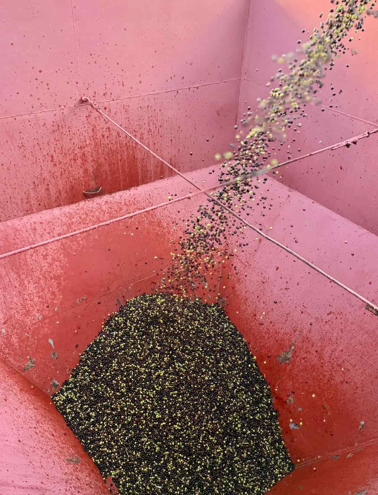 Luego se realiza la molienda, en la que las aceitunas completas incluyendo pulpa, piel y hueso se trituran hasta formar una pasta homogénea. Este paso libera las microgotas de aceite contenidas en el fruto.